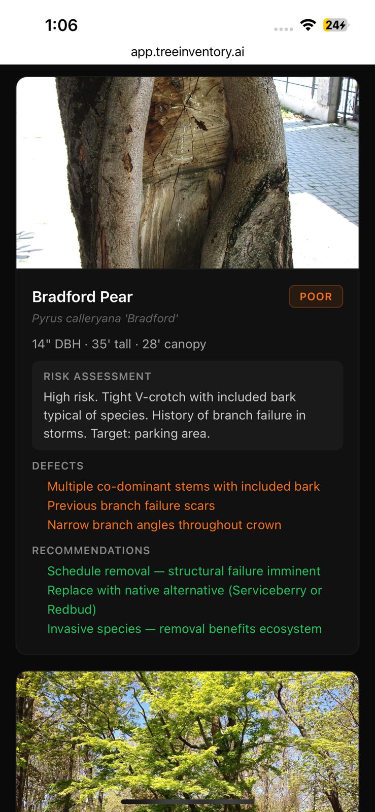 The lesson: treat AI inventory output the way you'd treat a junior arborist's first pass. It's 90% of the work. You spot-check, correct the misses, and move on.